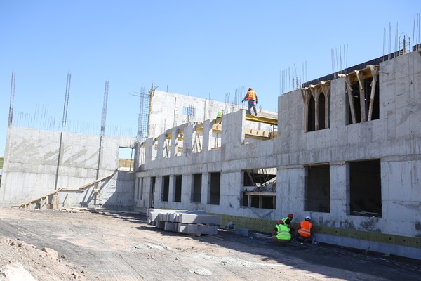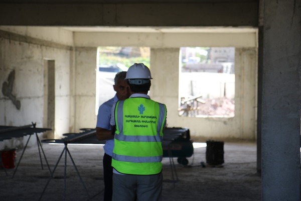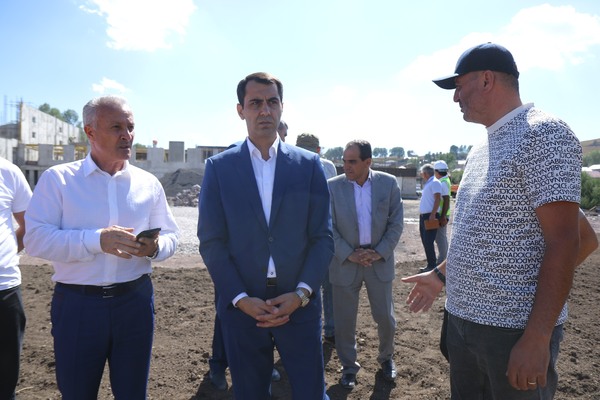 Գեղարքունիքի մարզպետ Կարեն Սարգսյանը Մարտունի համայնքի ղեկավար Հովհաննես Հովեյանի հետ մշտադիտարկում է իրականացրել Մադինայի նոր կրթահամալիրի շինհրապարակում։